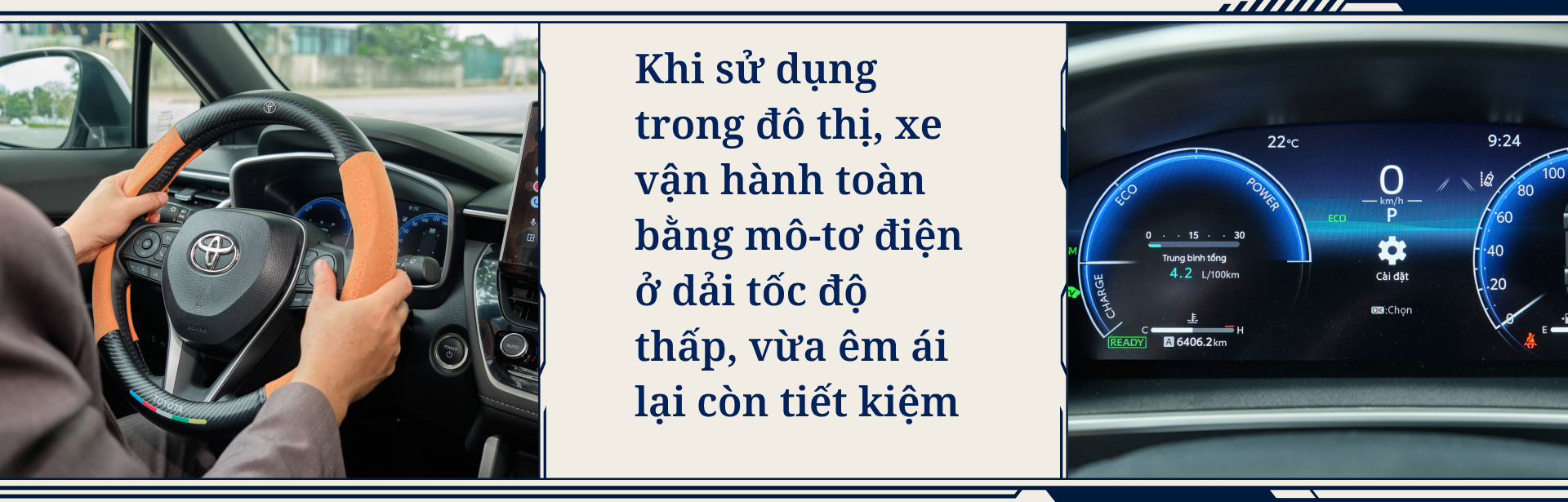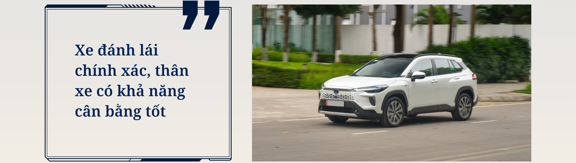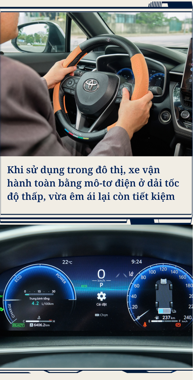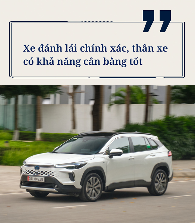 Theo trải nghiệm của người dùng này, Toyota Corolla Cross HEV chỉ sử dụng mô-tơ điện ở dải tốc độ thấp khi đi phố, không chỉ cho sức bật tốt khi cần bứt phá mà còn đem tới cảm giác lái nhàn nhã khi vận hành trong giờ cao điểm. Hệ thống treo của xe cũng là điểm anh Khôi đánh giá cao ở mẫu xe này, êm ái và “phù hợp với địa hình Việt Nam”.