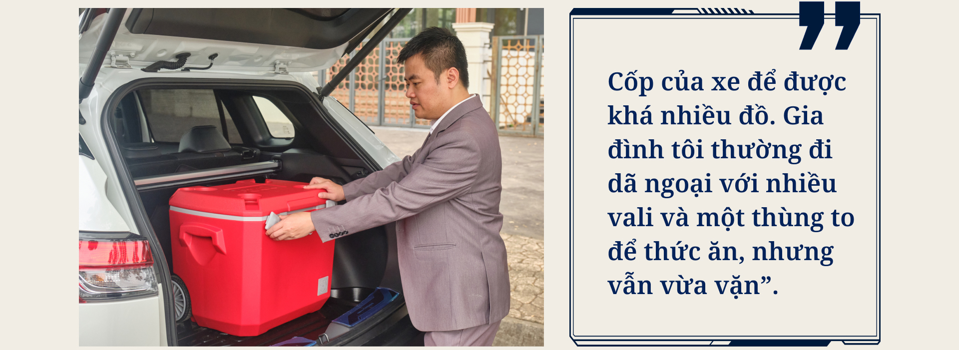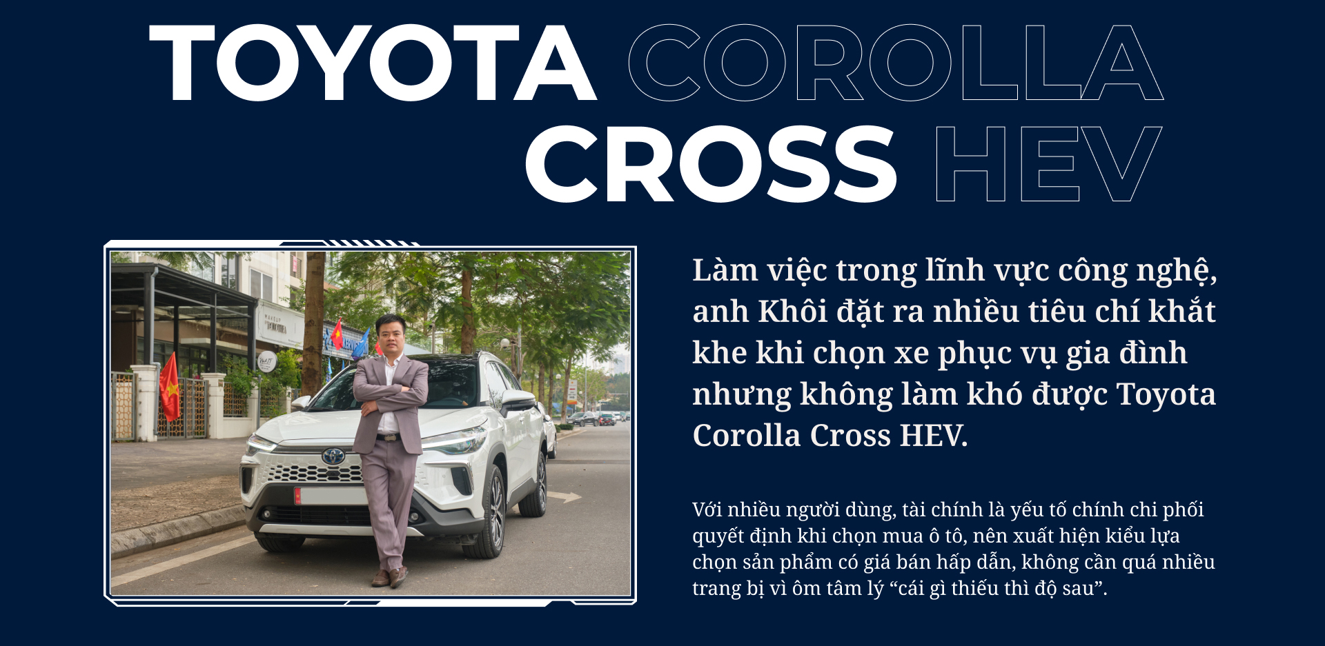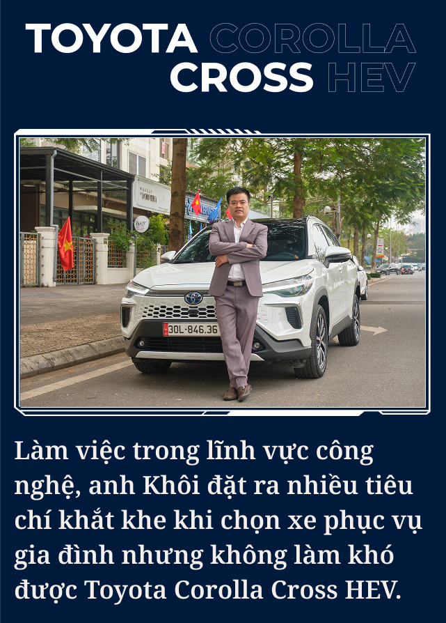 Theo anh Khôi, việc chấp nhận chi thêm tiền để mua bản hybrid của Toyota Corolla Cross cho phép anh “tận hưởng trang bị của bản full, đi sướng hơn, êm ái hơn nhờ sự hỗ trợ của mô-tơ điện”.